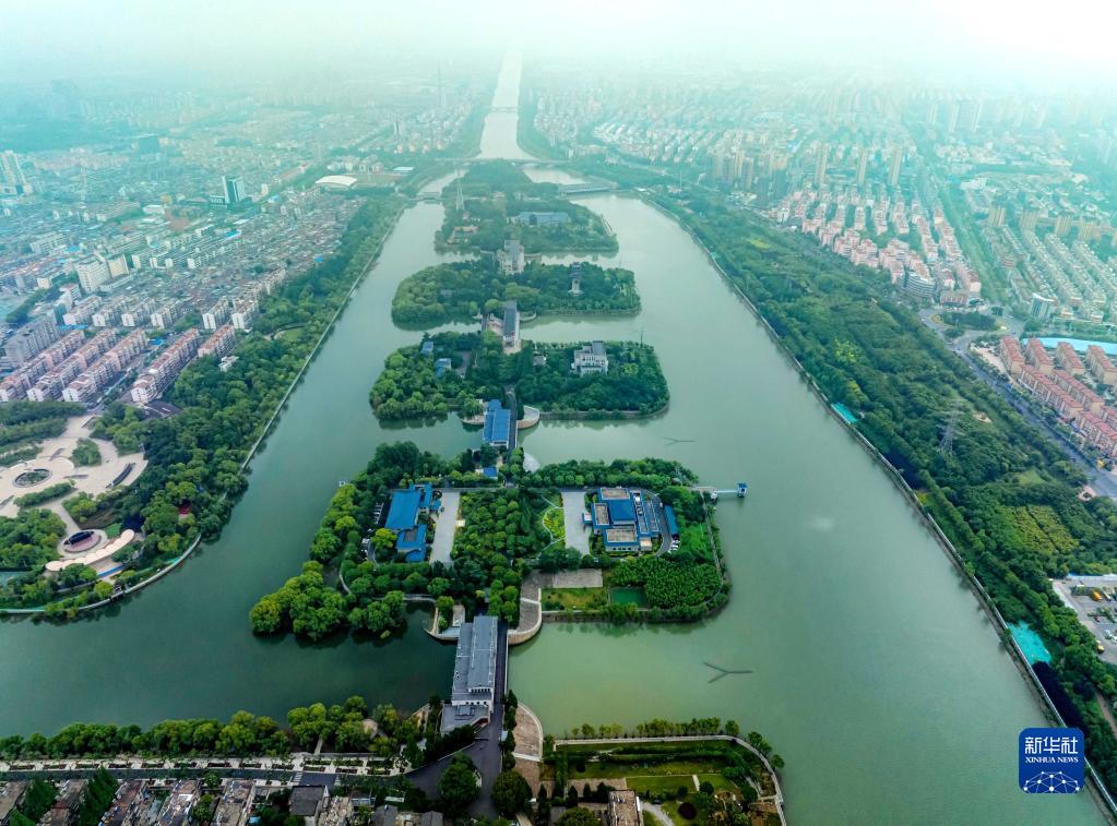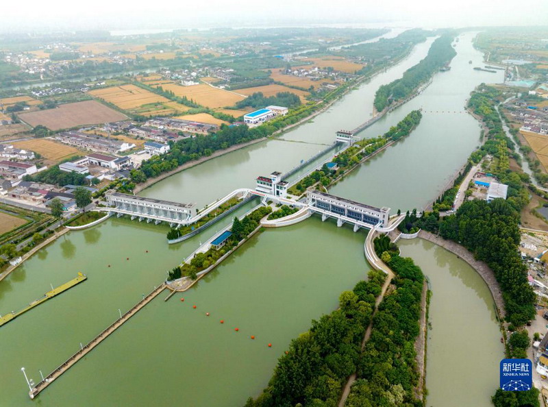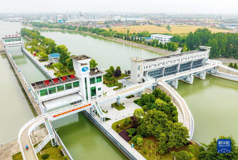 這是6月1日拍攝的位于江蘇省揚州市江都區(qū)的南水北調(diào)東線一期工程邵仙套閘、邵仙閘洞(無人機照片)。